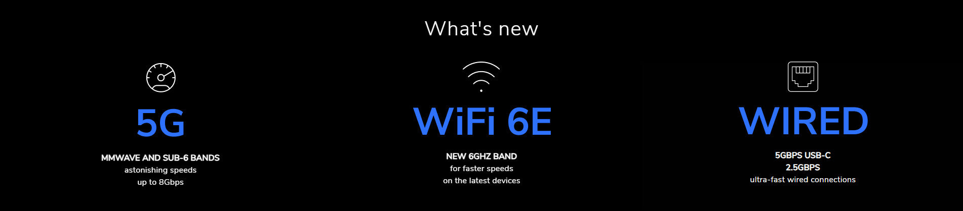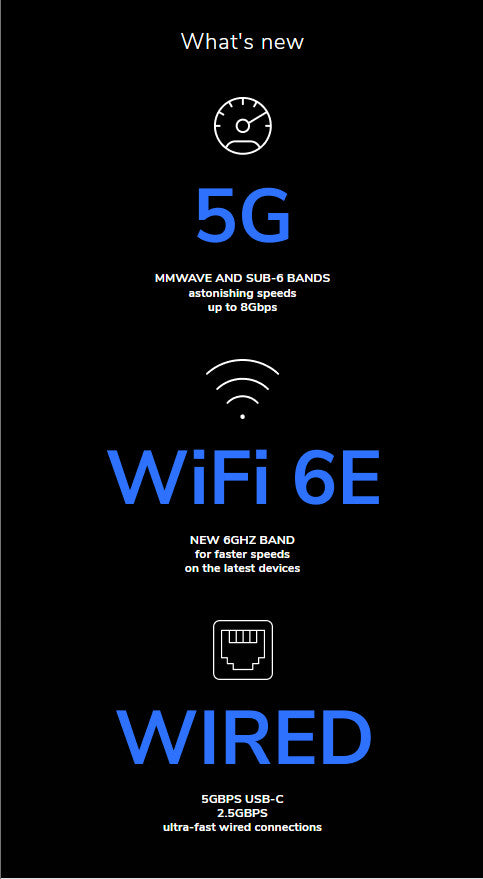 - NEW: Take advantage of cutting-edge 5G mmWave and WiFi 6E◊ technology unlocking 5G speeds up to 8Gbps‡ and WiFi up to 3.6Gbps∞. Provide connectivity for up to 32 devices all at once.