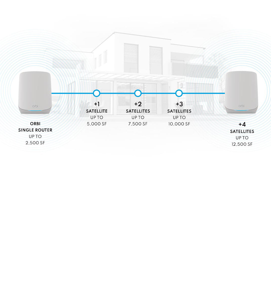 Orbi’s unique shape and height encase ultra-premium, high-power components to deliver significantly better coverage and overall performance than the competition.