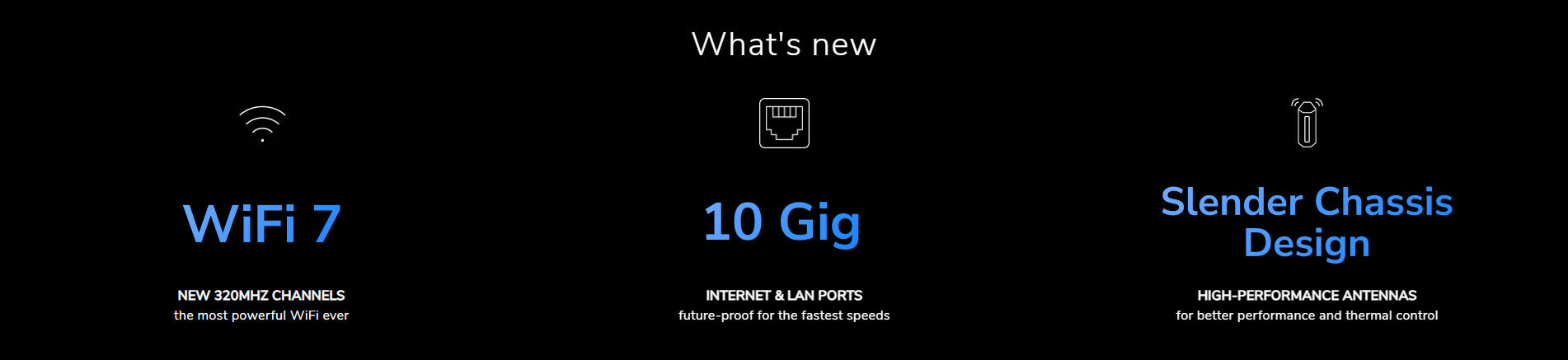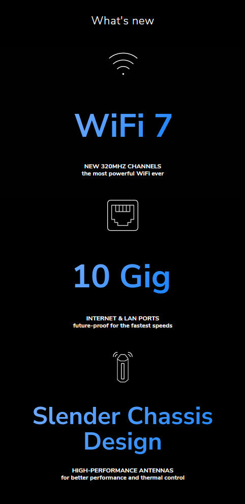 Unleashes WiFi 7 speeds up to 18Gbps† for real-time gaming, 4K/8K streaming, UHD video conferencing, and AR/VR entertainment