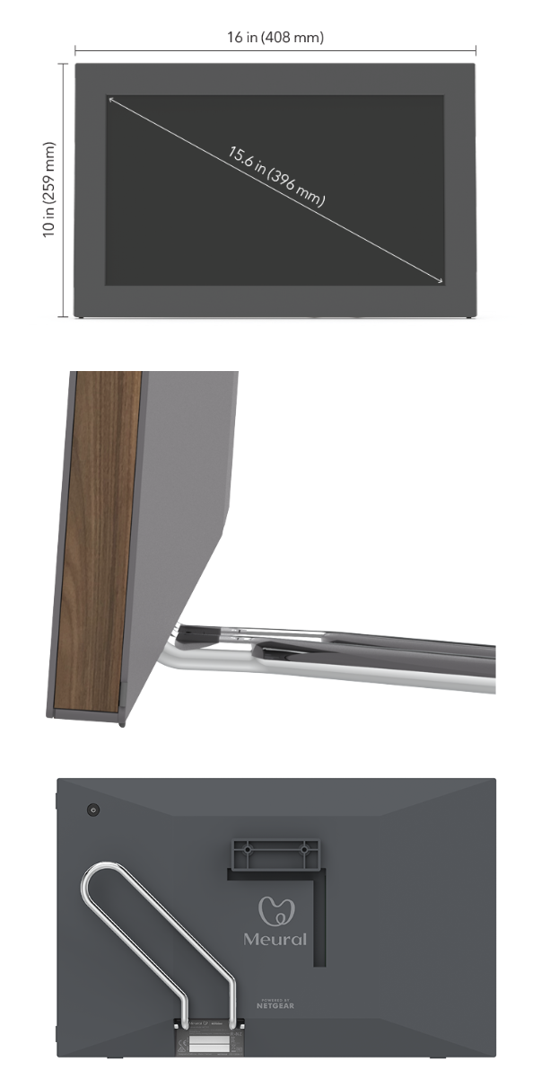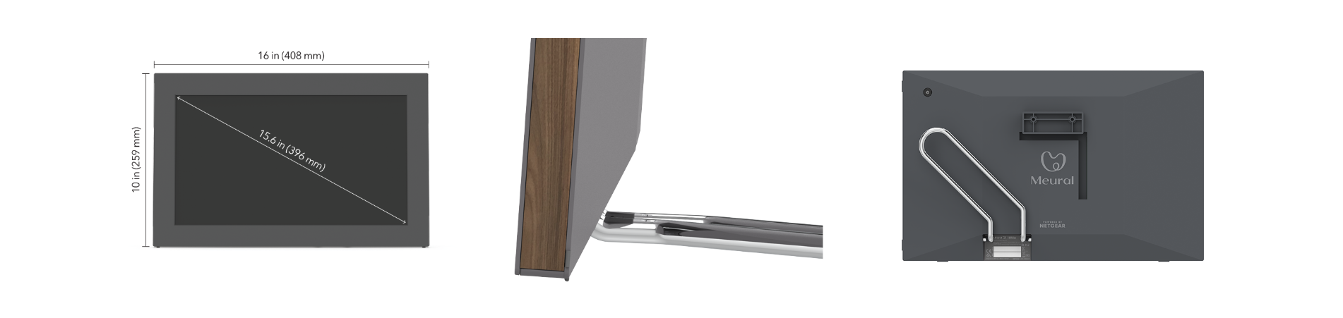 Meural WiFi相框(橫向) : 寬度16英寸(408毫米),高度:10英寸(259毫米),深度:1.68英寸(42.4毫米),重量:2.9磅或(1.3千克)