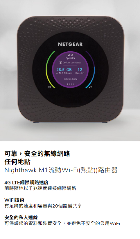 - 4G LTE Mobile Router (MR1100) : Dimensions: 105.5 (L) x 105.5 (W) x 20.35 (H) mm, Weight: 240 g (with battery)