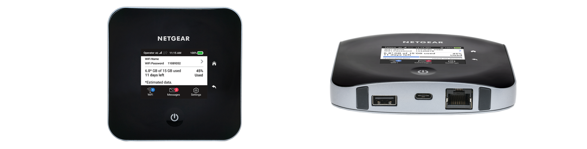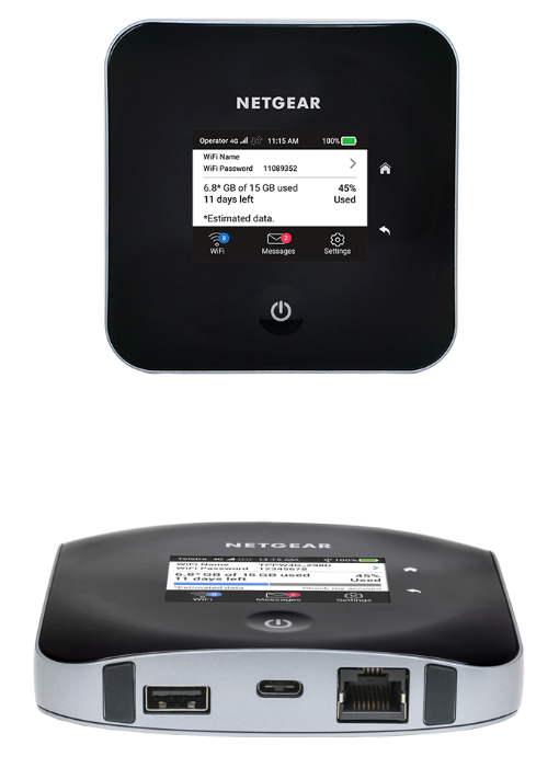 Nighthawk M2流動Wi-Fi(熱點)路由器採用全新的觸控式螢幕設計,因此管理網路和設定從未如此簡單–方便地監控數據使用情況,檢查當前WiFi名稱/密碼,移動信號強度以及更改設備和網路設定。
