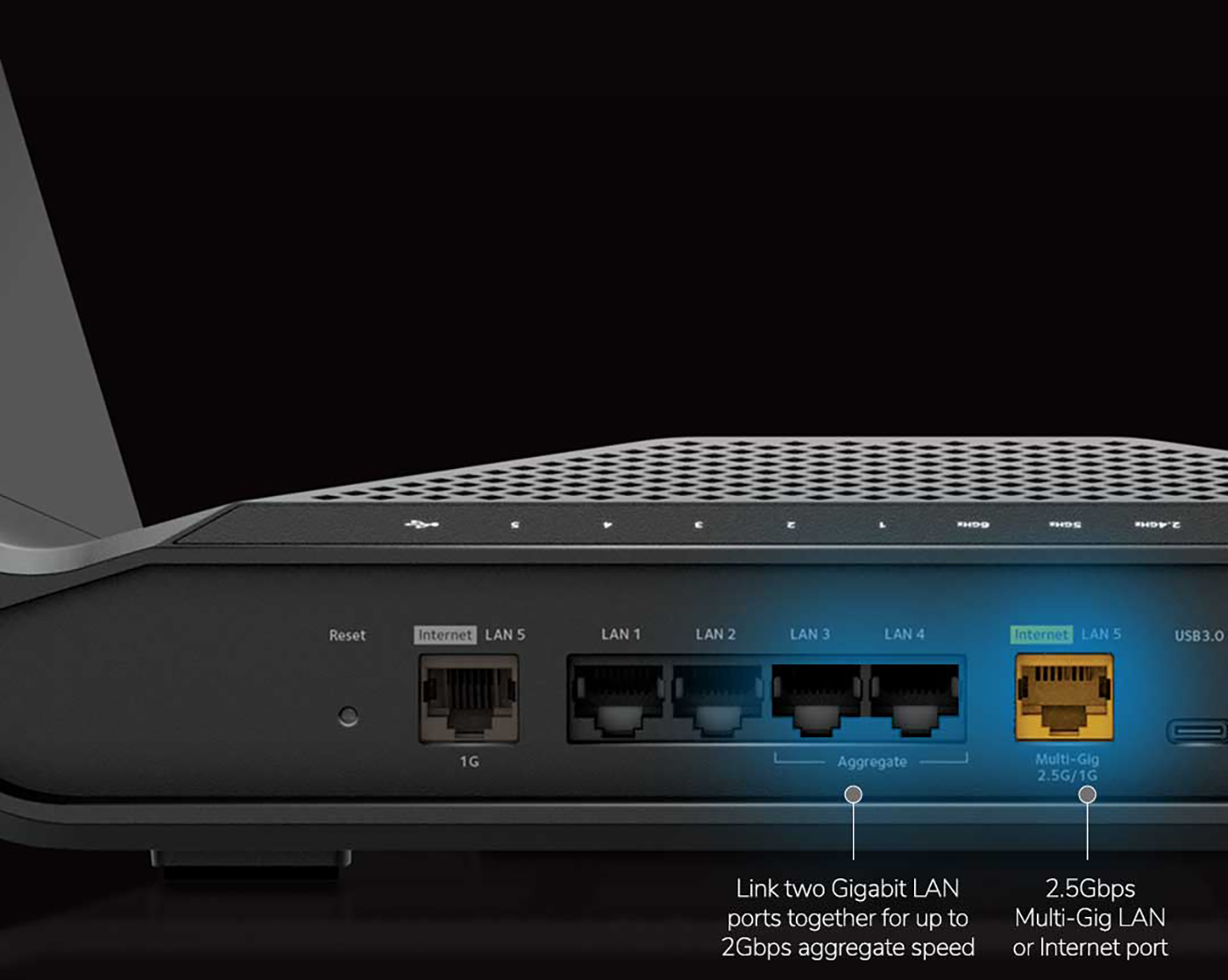 使用 2.5G 乙太網路連接埠或 2Gbps 連結聚合將千兆位元+速度傳送到您最嚴苛的設備,並將更多有線設備插入四個額外的千兆位元乙太網路埠