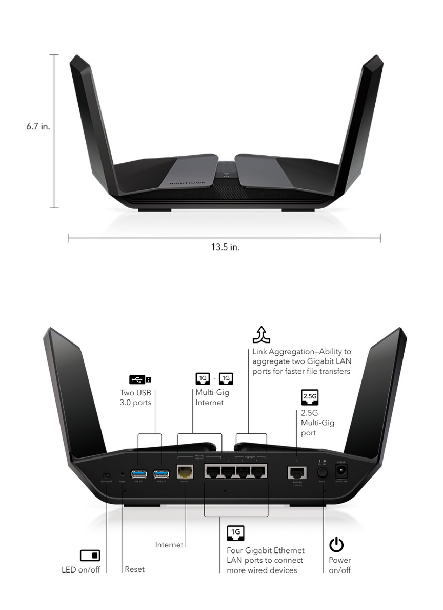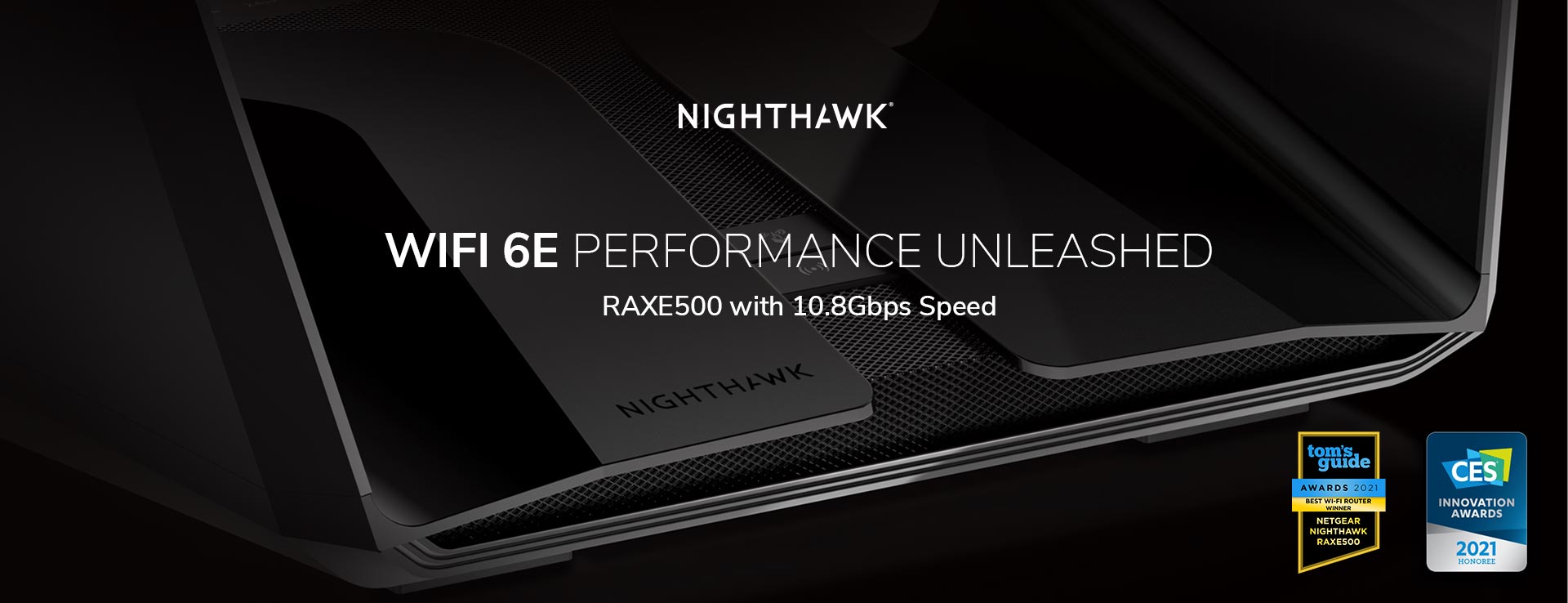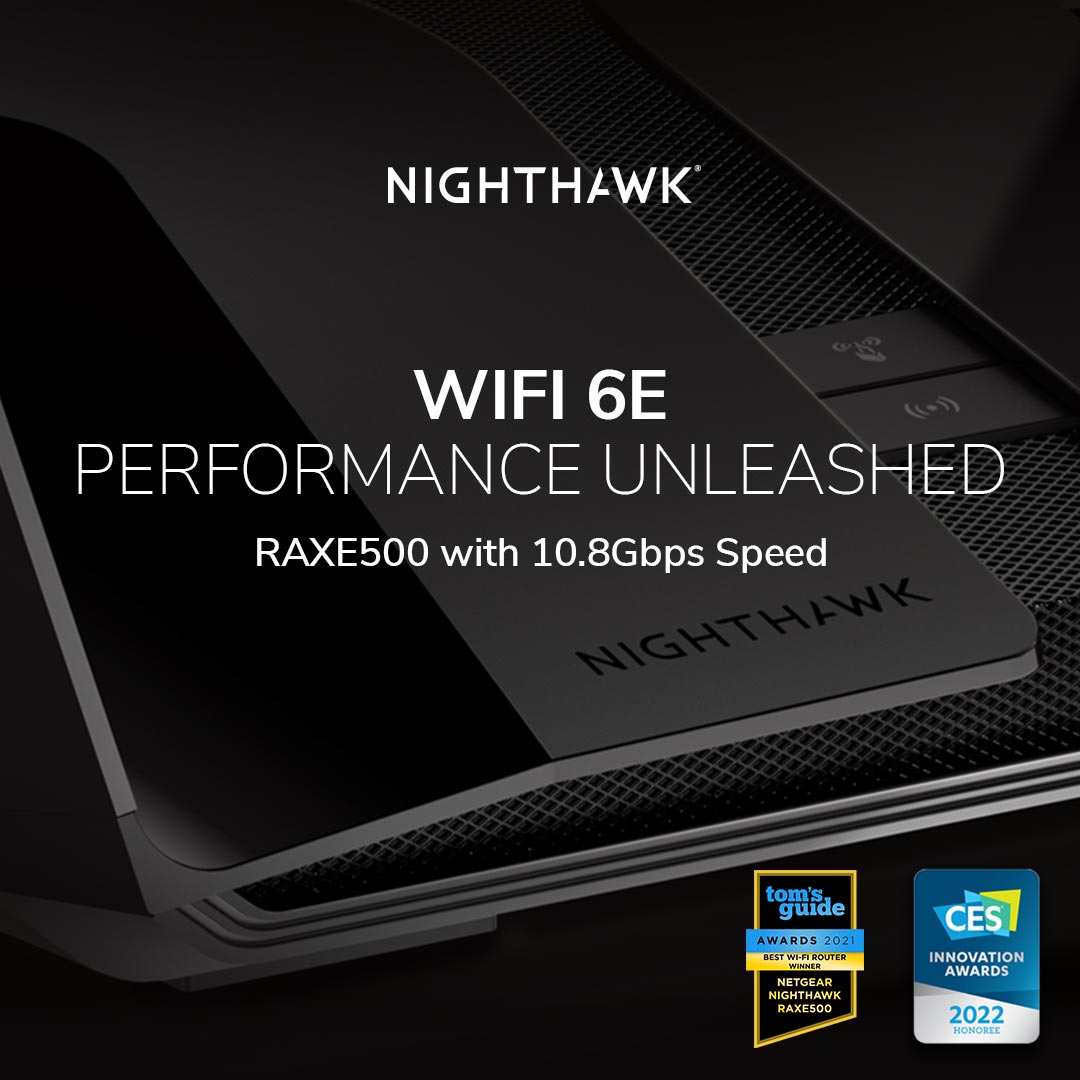 - Nighthawk® AXE11000三頻WiFi 6E路由器(RAXE500)