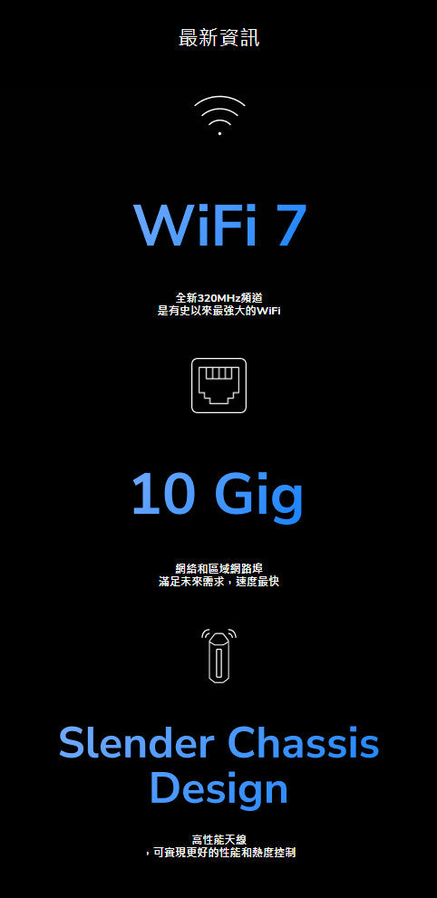 - 新增: 採用Broadcom功能強大的BCM6726/3 WiFi 7晶片,可在所有設備上提供增強的性能和突破性的速度。